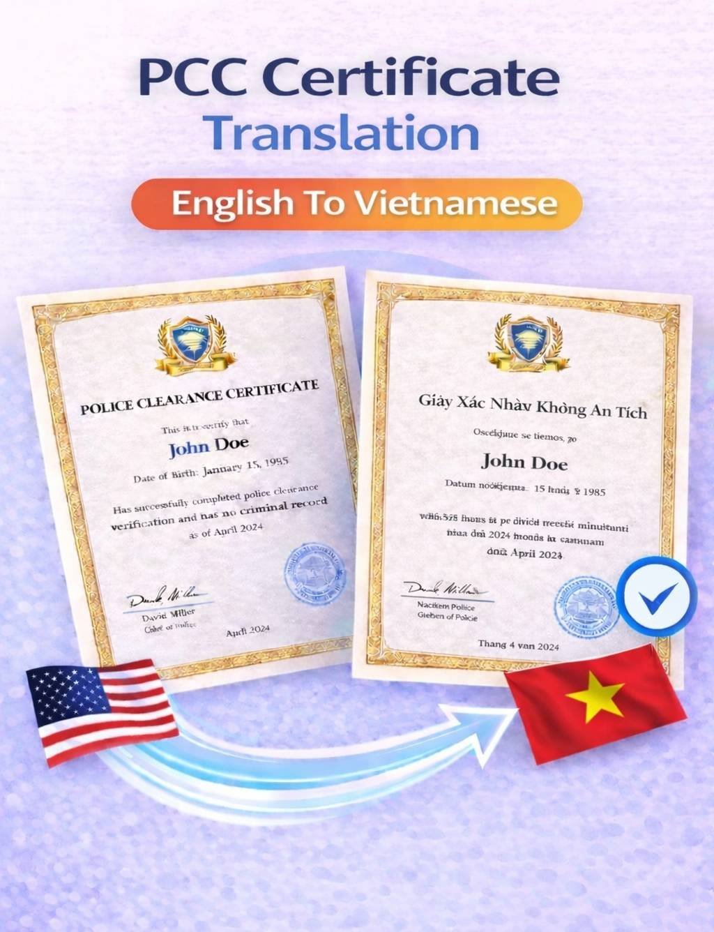 Police Clearance Certificate PCC Translation English to Vietnamese